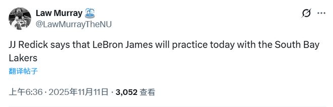雷迪克:勒布朗-詹姆斯今日随南湾湖人一起训练